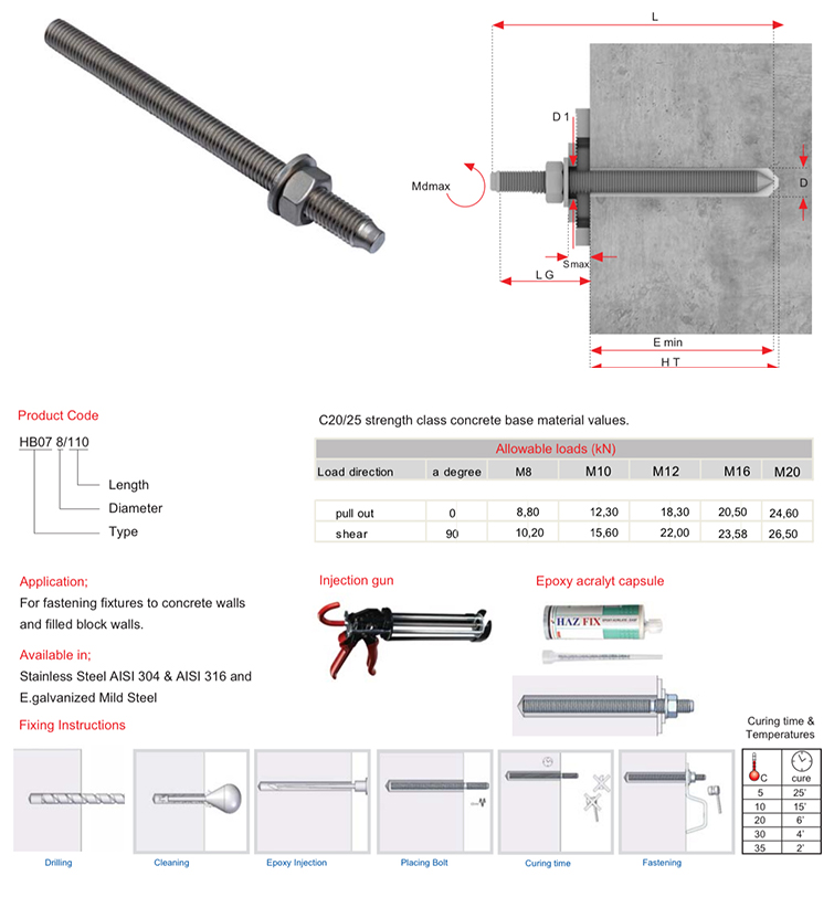 ما لنگرگاه های شیمیایی استیل ضدزنگ به گونه ای طراحی شده اند که ظرفیت بارگذاری بسیار خوبی و دوام طولانی مدت در محیط های سخت فراهم شود. ساخته شده از فولاد ضد زنگ درجه بالا (A2/A4-304/316) ، آنها در برابر خوردگی ، مواد شیمیایی و دمای شدید مقاوم هستند و برای ساخت ، زیرساخت ها و کاربردهای صنعتی مناسب هستند.