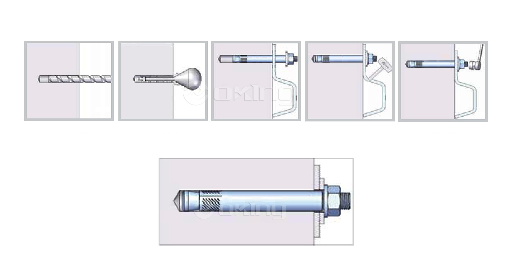 1. لنگر فوری: چکش به داخل، مهره گشتاور، و دستیابی به گسترش کامل آستین.