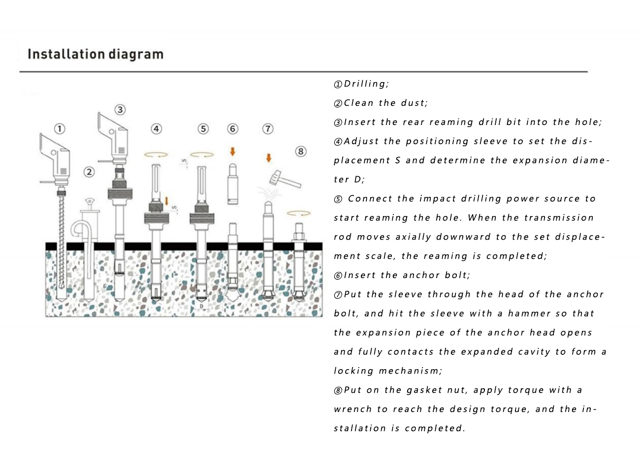 | مدل | قطر پیچ | قطر پیچ لنگر | نصب | طول پیچ لنگر | طول پیچ لنگر | عمق حفاری | نیروی برشی | نیروی برش |