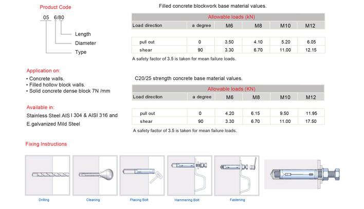 | اندازه پیچ | اندازه پوسته | قطر سوراخ مته | طول حفاری | حداقل تعبیه | حداکثر ضخامت فیکس | قطر سوراخ فیکس | حداکثر | طول پیچ | |