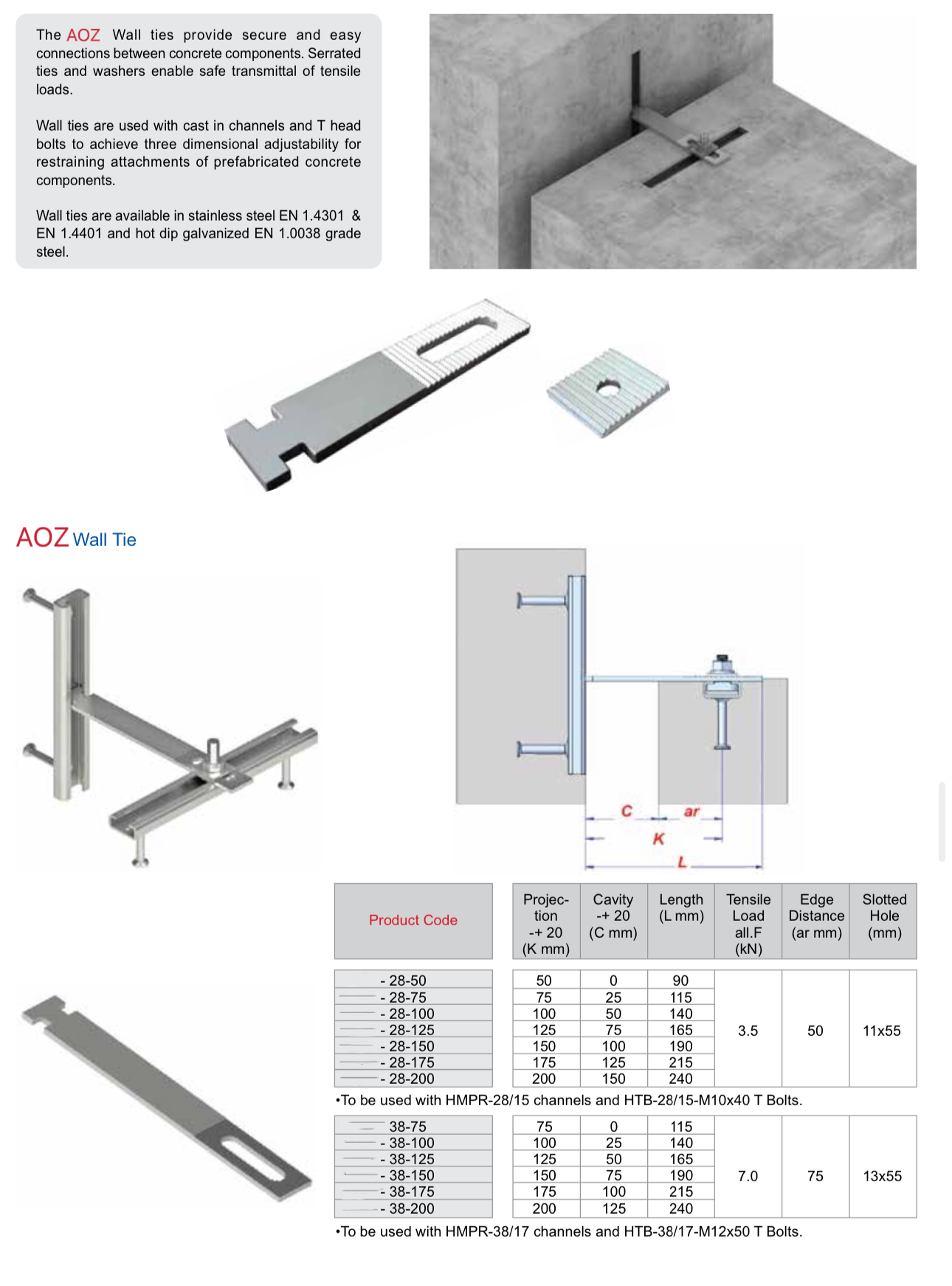 | ● برای استفاده از کانال های HMPR-28/15 و پیچ های HTB-28 M10x40 T استفاده می شود. | ||||||